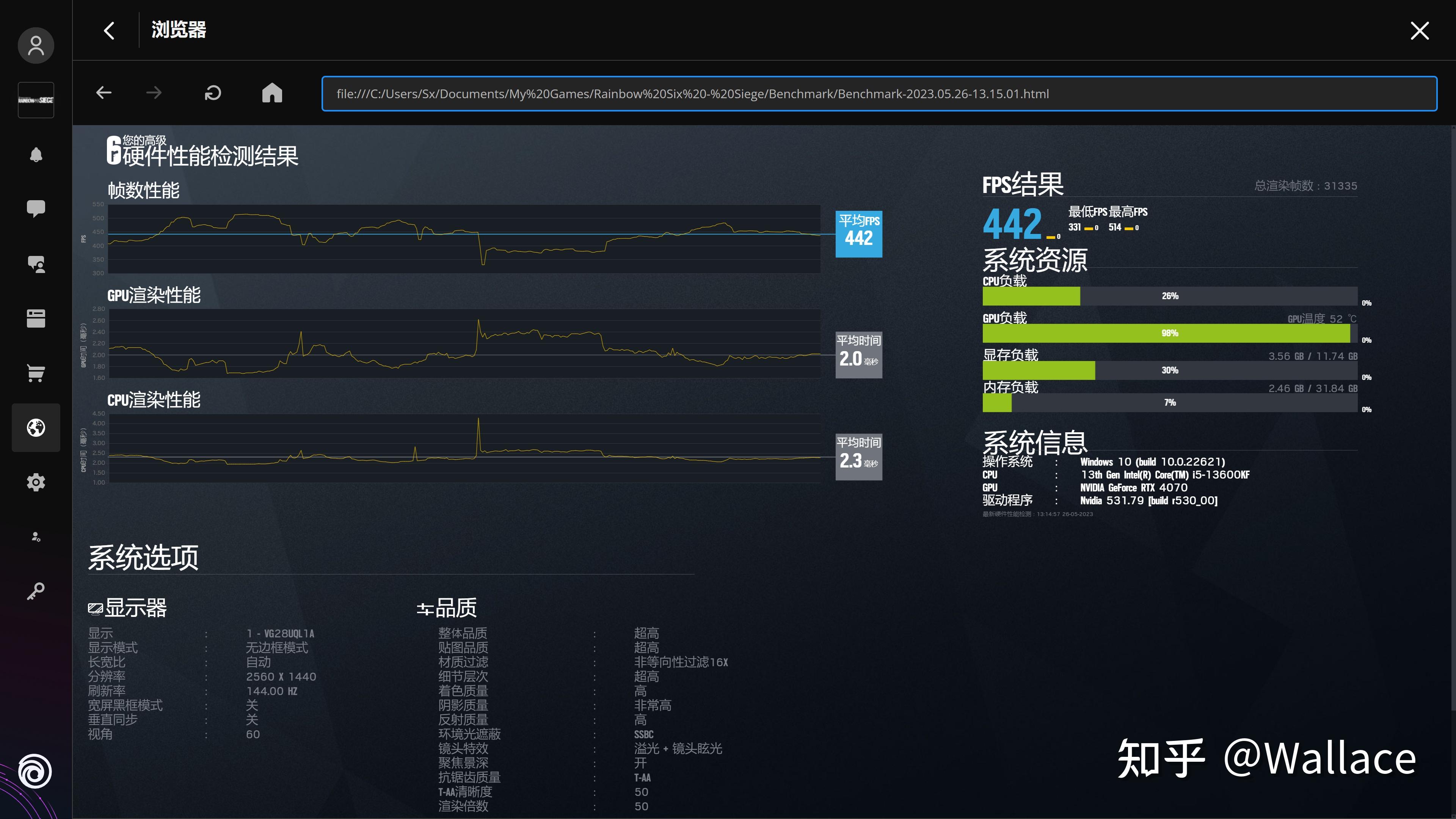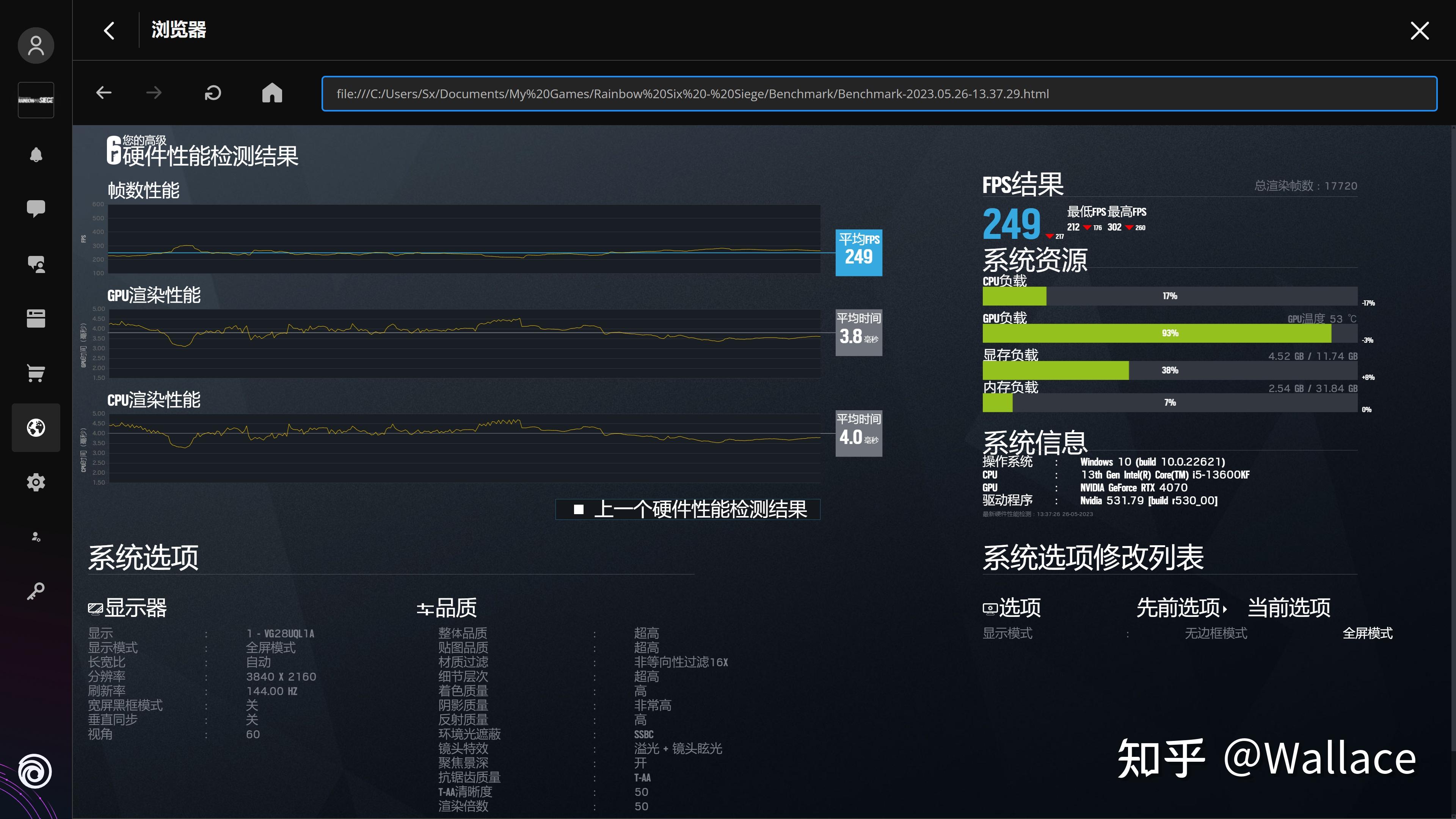 《彩虹六号:围攻》是育碧的FPS网游,测试得到,2K分辨率平均帧为442,4K分辨率平均帧为249。