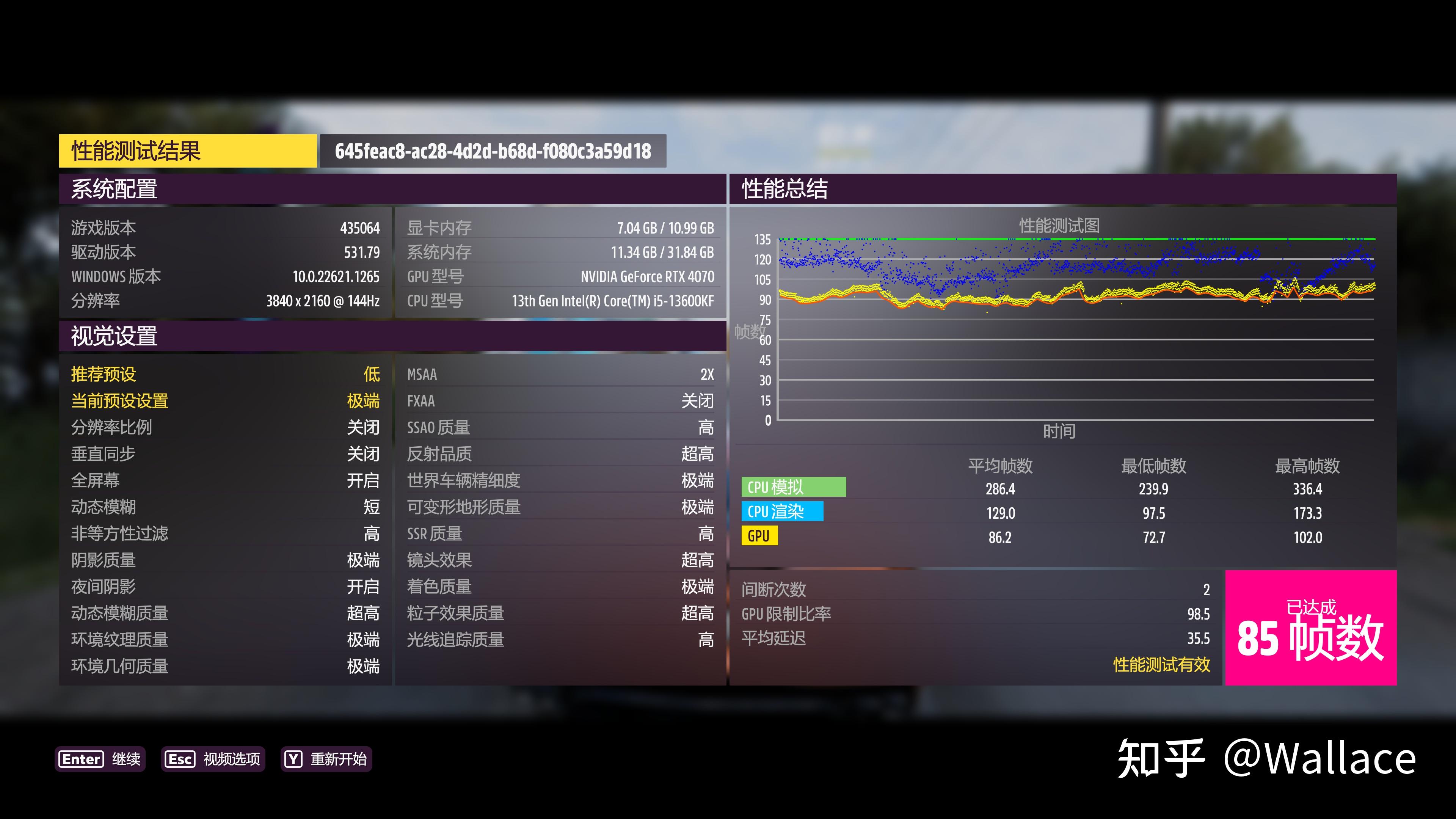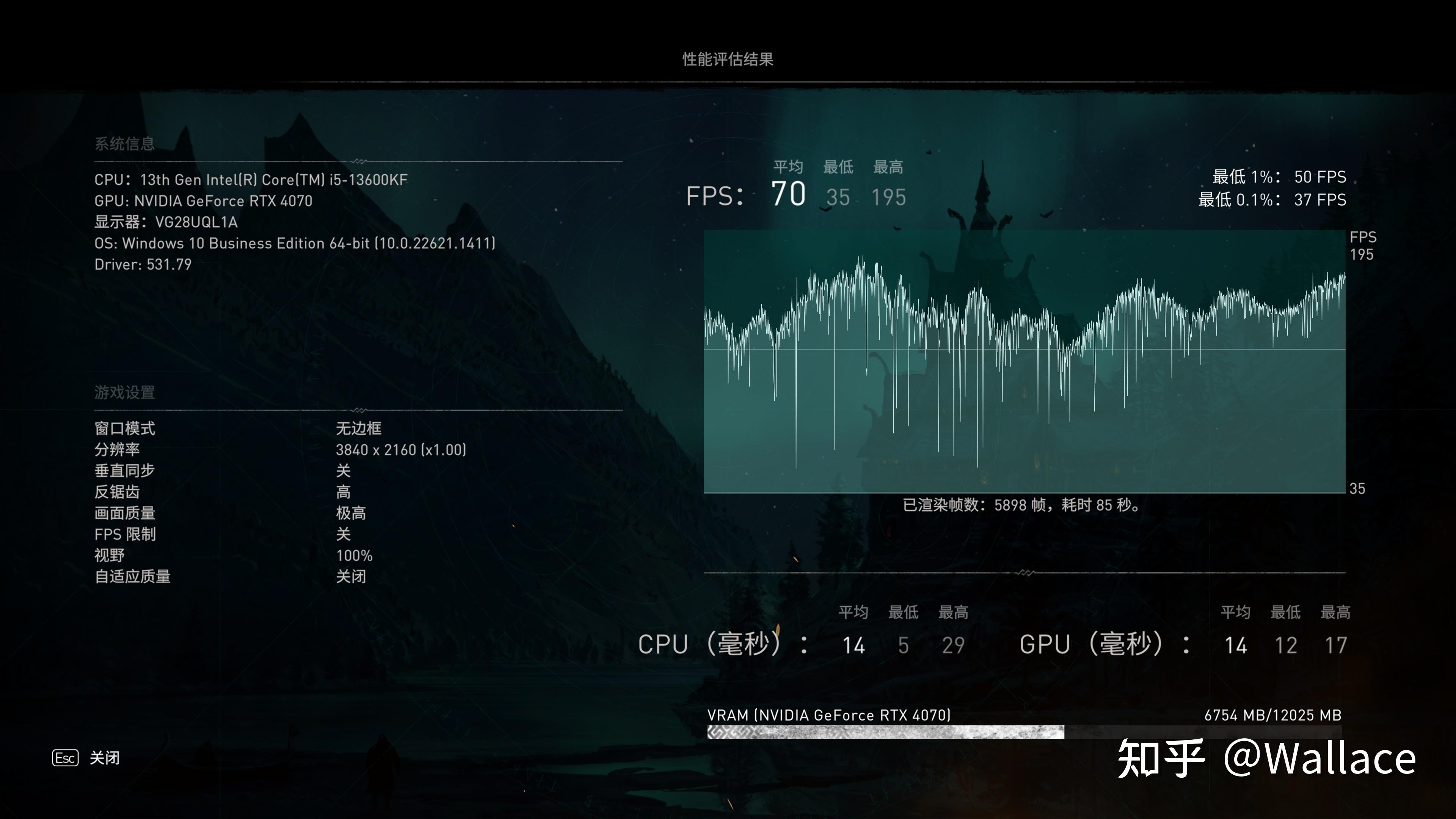 从测试结果来看,RTX 4070可以在2K分辨率下无脑拉满画质,而在4K分辨率还需要适当降低画质才能玩。