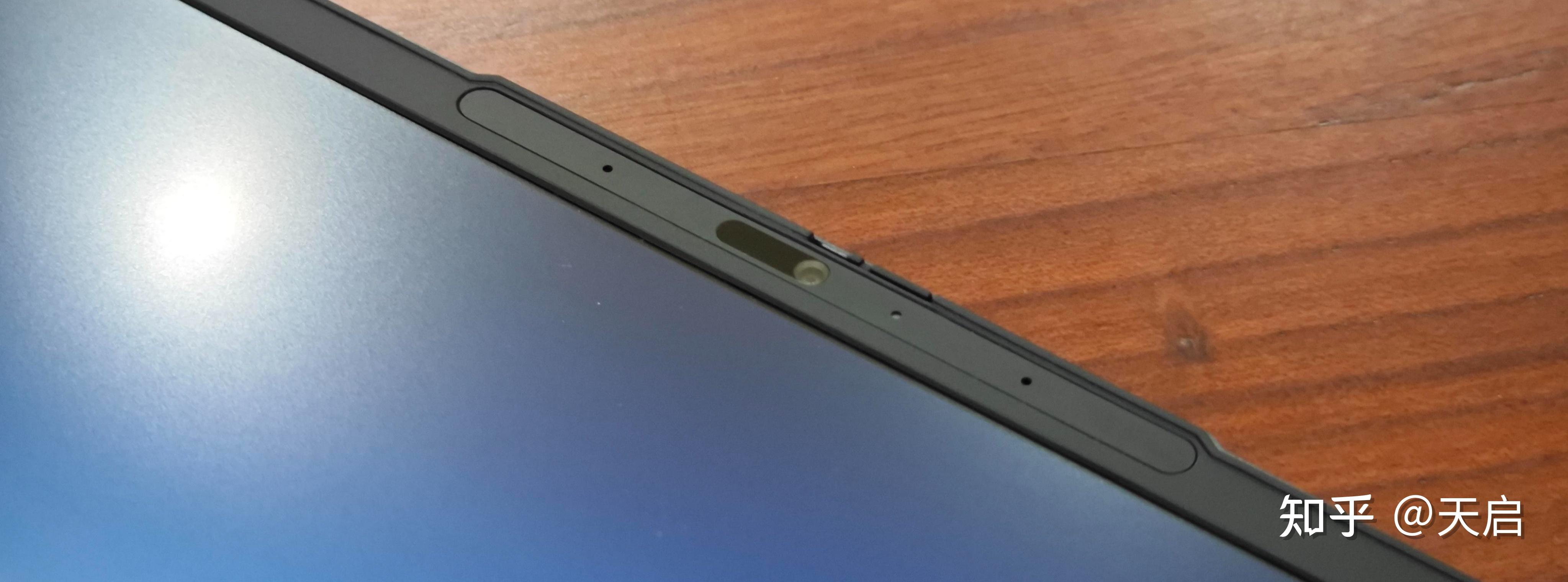 B面上方的小刘海中,T14p见缝插针的布置了双麦克风,支持ThinkShutter物理开关与IR红外人脸识别的FHD摄像头模组与摄像头指示灯,可谓麻雀虽小五脏俱全。