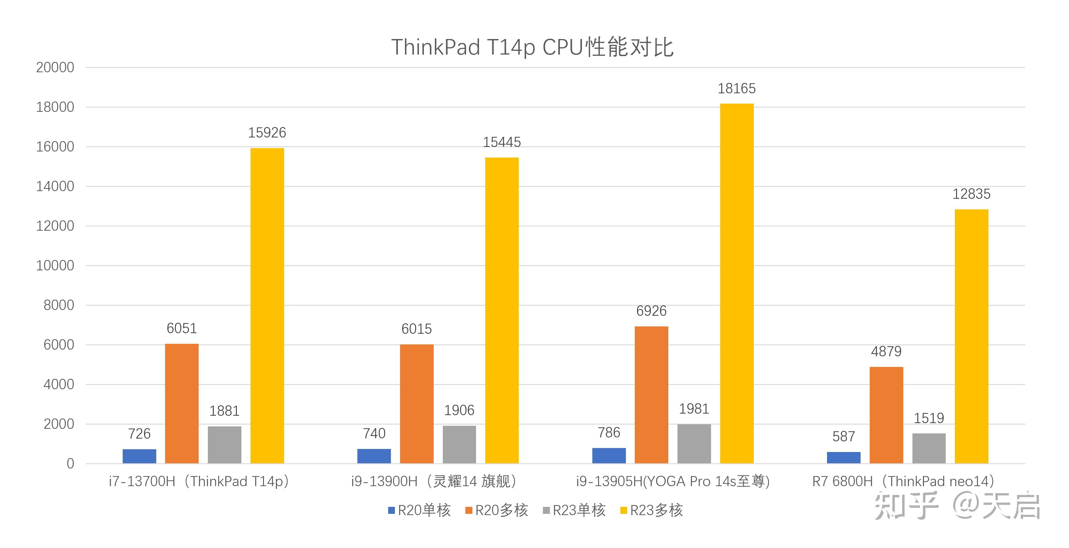 简单对比一波,T14p凭借更好的性能释放,用i7在多核成绩上干掉了使用i9的灵耀,同时,相对上代锐龙处理器,则在CPU的单核和多核成绩上都有比较大的优势。