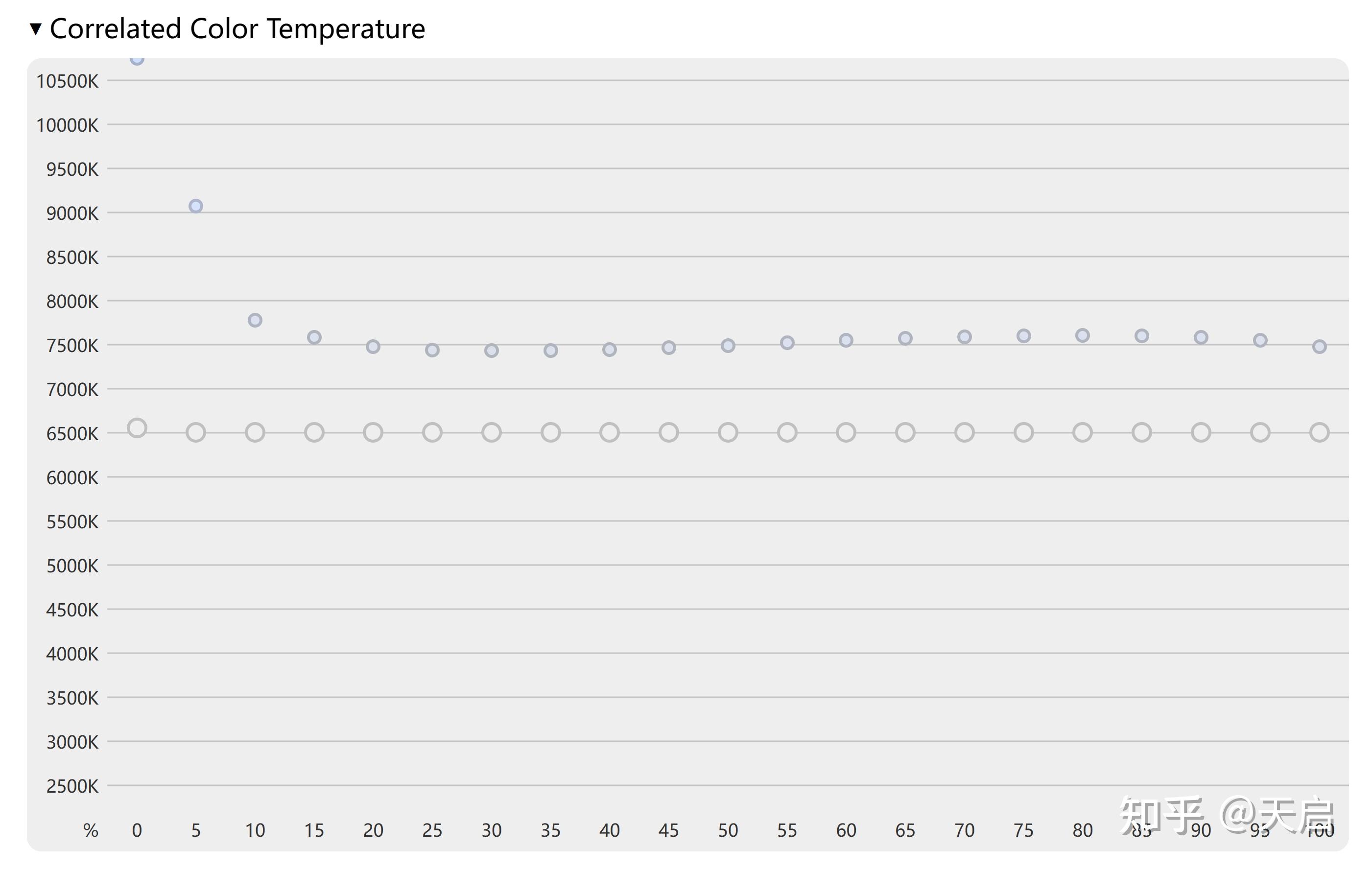 色温表现也还可以,在10%以上亮度基本没有出现大的色温波动,且维持在了更适合亚洲人观感的7500K。